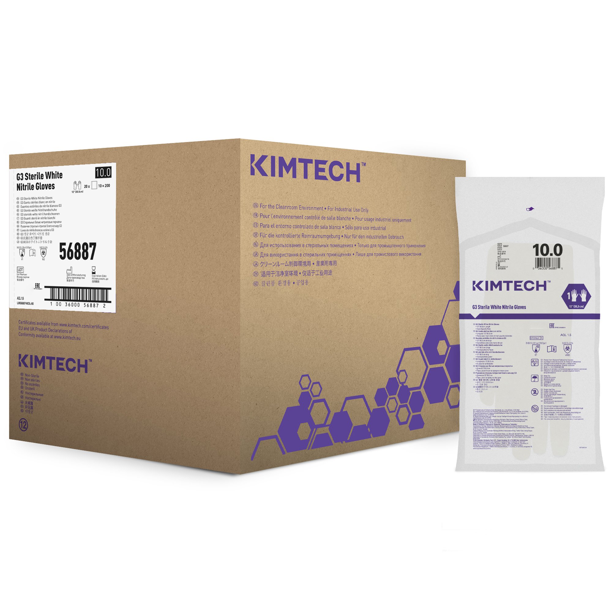 Kimtech™ G3 Sterile White Nitrile Hand Specific Gloves provide unrivalled contamination control and cleanliness, designed to protect both the wearer and their processes in a range of regulated cleanroom environments. The high quality white nitrile construction ensures the hand-specific sterile gloves are ideal for EU GMP ISO Class 5 (Grade A) sterile cleanrooms. High risk applications demand sterile contamination protection that is certified for all relevant requirements while providing excellent comfort and tactile control to ensure processes are safe and efficient. Our disposable Kimtech™ G3 Sterile White Nitrile Gloves fulfil these criteria, with user-friendly design and white nitrile material that protects against chemical splash, viruses and micro-organism contamination. The powder-free gloves also feature a textured finish for improved grip and sensitivity while being suitable for double donning. The gloves contain no natural rubber latex or silicone, which reduces the risk of skin irritation. The Kimtech™ G3 Sterile White Nitrile Gloves are validated to a Sterility Assurance Level (SAL) of 10-6 and feature a cleanliness level of a maximum of 950 particles >0.5μm/cm2, and an endotoxin level of 20 units/pair maximum. The gloves are provided cleanroom-ready; double-packaged in polyethylene bags to ensure your processes and workflows can stay operating efficiently. Available Sizes/Codes: 6 – 56888 (Formerly HC61160); 6.5 – 56889 (Formerly HC61165); 7 – 56890 (Formerly HC61170); 7.5 – 56891 (Formerly HC61175); 8 – 56892 (Formerly HC61180); 8.5 – 56893 (Formerly HC61185); 9 – 56894 (Formerly HC61190); 10 – 56887 (Formerly HC61110)