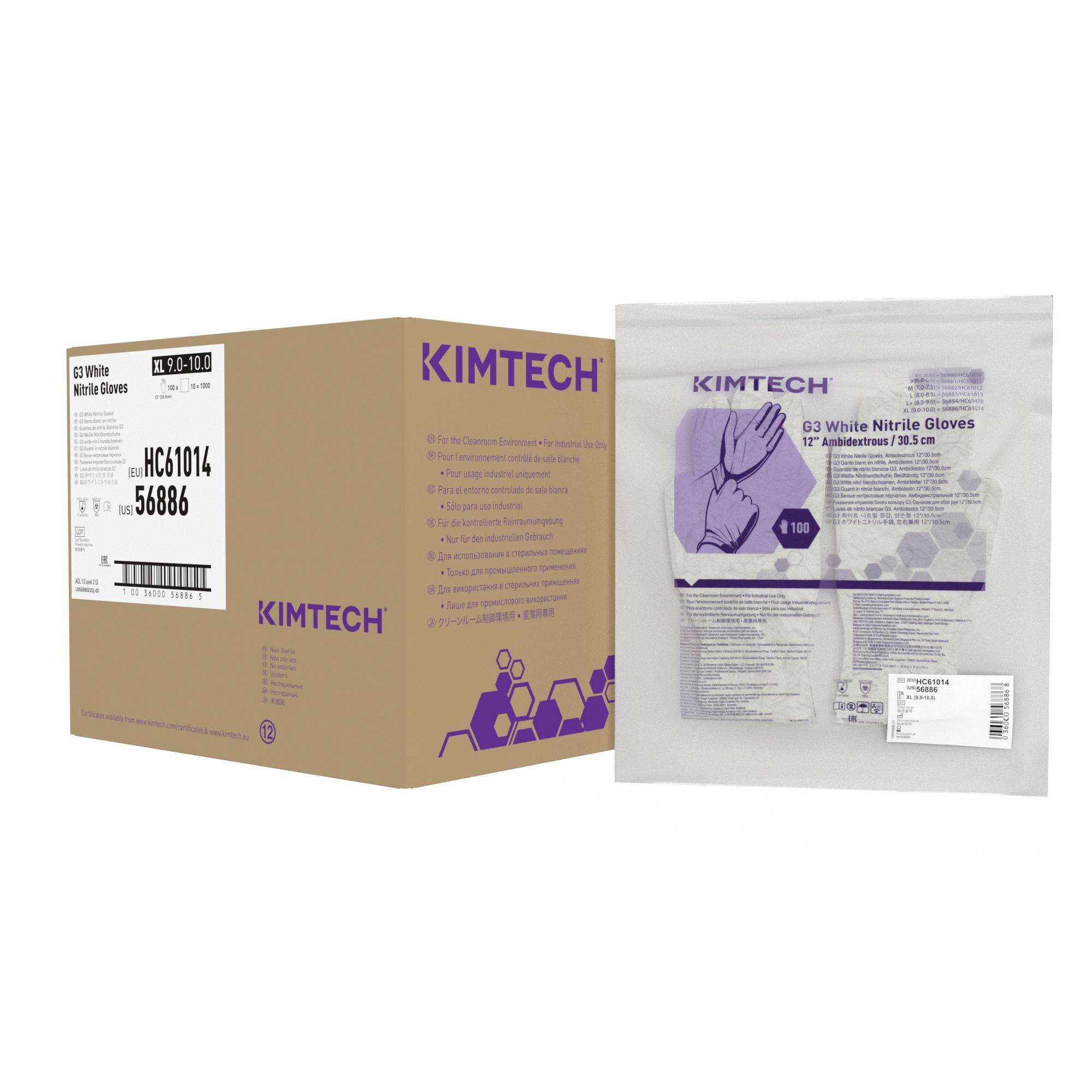 Kimtech™ G3 White Nitrile Ambidextrous Gloves are ideal for handling delicate equipment in microelectronics, semiconductor, optics and non-sterile pharmaceutical applications; when the highest levels of sensitivity, protection and performance are required. The high quality nitrile gloves deliver seamless protection when and where it is needed and are suitable for ISO Class 3 or higher cleanroom environments. The nitrile polymer material is designed for fit and reliability, with textured fingertips for improved grip and excellent water tightness with a low risk of pinholes. The gloves are ambidextrous and incorporate a beaded cuff for added strength and ease of donning, so the wearer can simply grab and go without any fear of ripping the material. Our non-sterile nitrile cleanroom gloves are also latex, silicone and powder-free. The absence of natural rubber latex reduces the risk of TYPE 1 glove-associated reactions, protecting the wearer as well as the application. During manufacture the gloves are washed repeatedly in ultrapure deionised water to ensure consistent control of particles and extractables. The gloves are designated as PPE Cat III according to (EU) Regulation 2016/425 and to the Regulation 2016/425 as brought into UK law and amended. Gloves are provided double-bagged in cleanroom-compatible polyethylene and case liner so as to be easily integrated into your processes. Available Sizes/Codes: XS – 56880 (Formerly HC61010); S – 56881 (Formerly HC61011); M – 56882 (Formerly HC61012); L – 56883 (Formerly HC61013); XL – 56886 (Formerly HC61014)